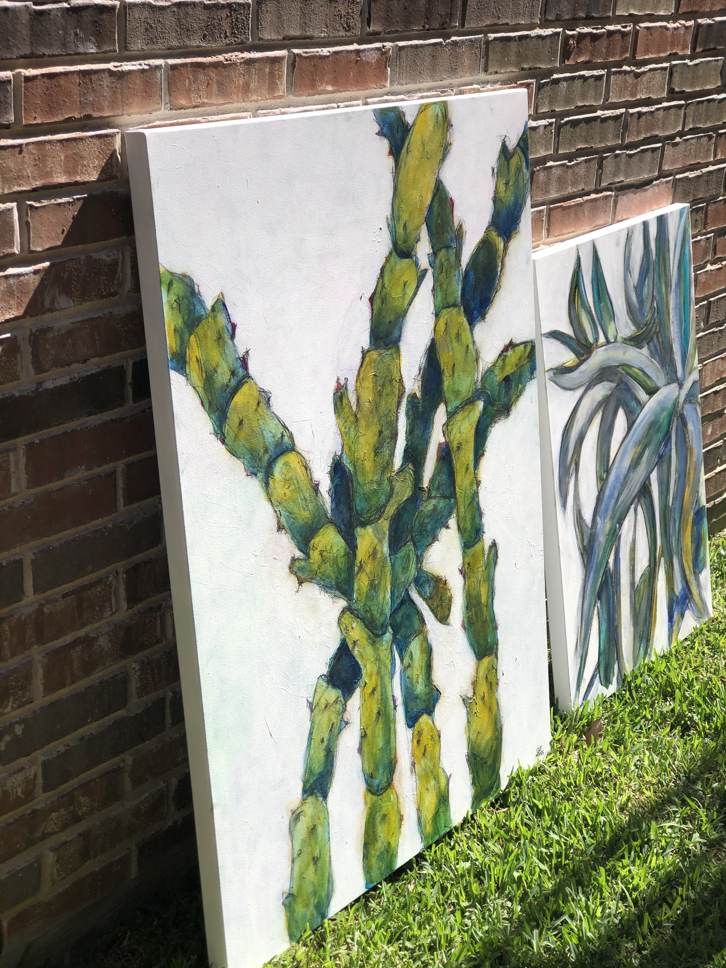 I’m creating work for interior decorators and collectors in DFW who want art that can adapt to the room — color, scale, diptych or single panel, and even details like the number of cactus stalks or the mood of the palette.